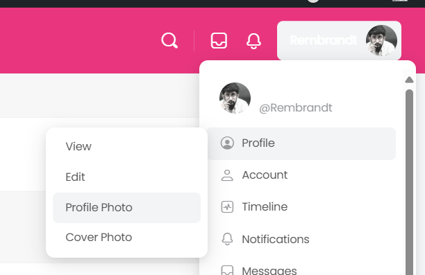 Open the menu at the right of the header and select Profile and then Profile Photo.