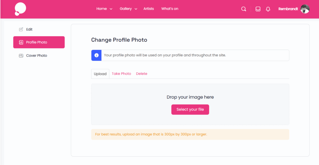 For best results, upload an image that is 300px by 300px or longer.